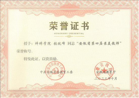 学校紧紧围绕立德树人根本任务,以教育家精神为引领,通过制度创新、理论武装、典型选树、人文关怀等多维度举措,全面加强师德师风建设,为教育强国建设注入持续动力。健全师德师风建设长效机制,成立党委教师工作委员会,设立校院两级师德师风建设领导小组,出台《关于建立健全师德建设长效机制的实施意见》等,全面实行师德问题“一票否决”机制,强化师德师风建设刚性约束。把提升教师思想政治素质作为教师队伍建设的根本性、先导性任务来抓,将思想政治建设纳入教职工例会、教师党支部“三会一课,贯穿各类专题培训、师德状况调研等全过程,充分发挥教师党支部的战斗堡垒作用。注重先进典型选树引领,通过集中学习研讨、专题辅导报告、政策宣讲等多种形式,新教师入职宣誓、老教师荣休仪式等多项举措,推动师德师风教育融入日常、抓在经常。强化反面警示,深入推进师德师风专项整治,编制师德典型案例汇编,真正实现入脑入心,达到“猛击一掌、当头一棒”的警醒效果。近五年,教师荣获安徽省优秀教师、安徽省“最美教师”、优秀共产党员、优秀党务工作者、安徽省三八红旗手称号、教科文卫体工会系统师德先进个人等荣誉称号21人;1个教学单位获评“安徽省教育工作先进集体”,1名教师的先进事迹被编入安徽省《师德优秀典型先进事迹学习读本》,着力营造崇尚师德、学习先进的浓厚氛围。