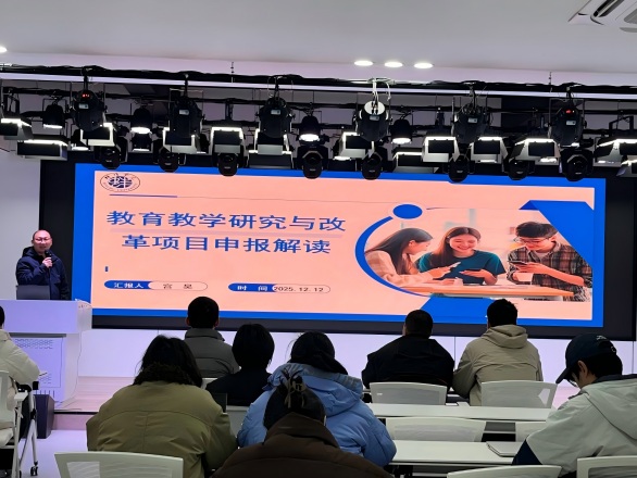 12月12日上午,由学校党委教师工作部负责组织,举办了“教育教学研究与改革项目申报解读”专题校本培训。本次讲座由教务处副处长宫昊作专题报告,2025年新入职教师共计98人参加。
